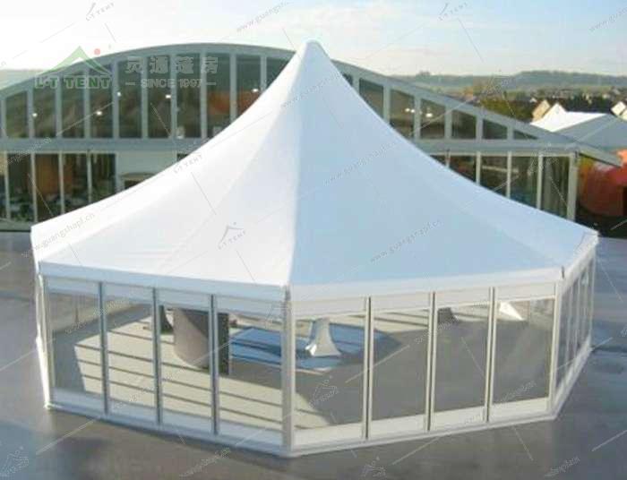 多边形篷房有钻石顶和尖顶两种造型设计,尺寸规格从6m到50m,六边形到十二边形篷房,如六边形篷房、八边形篷房、十边形篷房、十二边形篷房、十六边形篷房等。