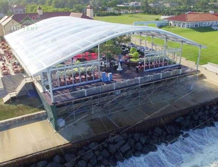 弧顶篷房是一款兼具美观与实用性的临时空间解决方案,其独特的弧形顶部设计不仅赋予建筑优雅的流线型外观,更通过力学结构优化提升了抗风抗震性能。作为户外活动、商业展览、体育赛事、婚庆典礼及仓储物流的理想载体,弧顶篷房采用高强度铝合金框架与阻燃防水 PVC 篷布组合,兼具轻量化与耐用性,可抵御恶劣天气。弧顶篷房的模块化结构支持快速搭建与拆卸,无需复杂地基处理,能灵活适配草坪、水泥地、沙滩等多种地形。内部无立柱的开阔空间设计,最大化利用使用面积,搭配灯光、空调、隔断等配套设施,可轻松打造个性化场景。无论是短期活动的临时场馆,还是中长期使用的仓储或户外商业空间,弧顶篷房都以其灵活多变、节能环保、性价比高的优势,成为现代空间解决方案的热门选择。选择弧顶篷房,即选择了兼具功能性与美学价值的空间体验。