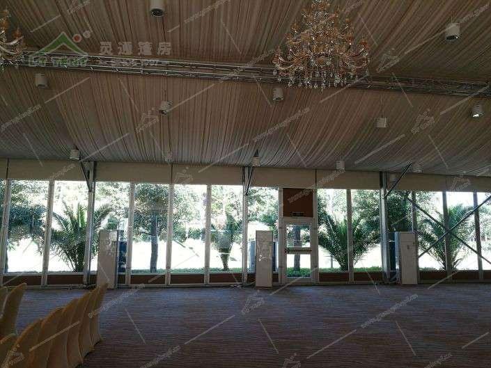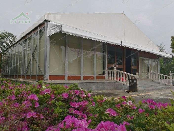 1. 酒店篷房本身是四四方方、尖顶的,四面都有很好的延展性,所以支持定制各种规格的尺寸,然后根据场地大小做出准确的判断。
