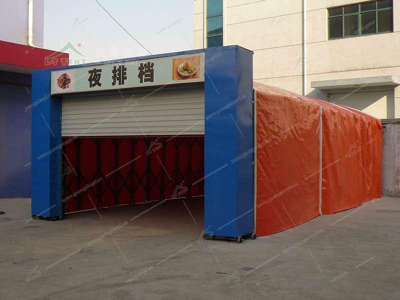 灵通推拉篷房/停车棚产品具有成本低,铺设、投放和撤收使用方便,质量轻,强度高,降低产品和机械的使用成本,降低工人的劳动强度,材料本身有抗爆、阻燃、抗静电等作用,且易防护和保养。