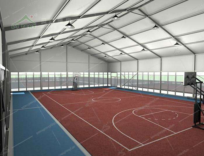 篮球馆篷房内部空间很大,空间利用率高,通知可以根据功能需求、比赛需求可以任意布置。