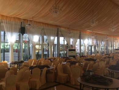 3、酒店篷房对于场地没有要求,不管是水泥地,还是其他的一些地面都能搭建,所以对于一些户外的婚礼,酒会等非常的适用。