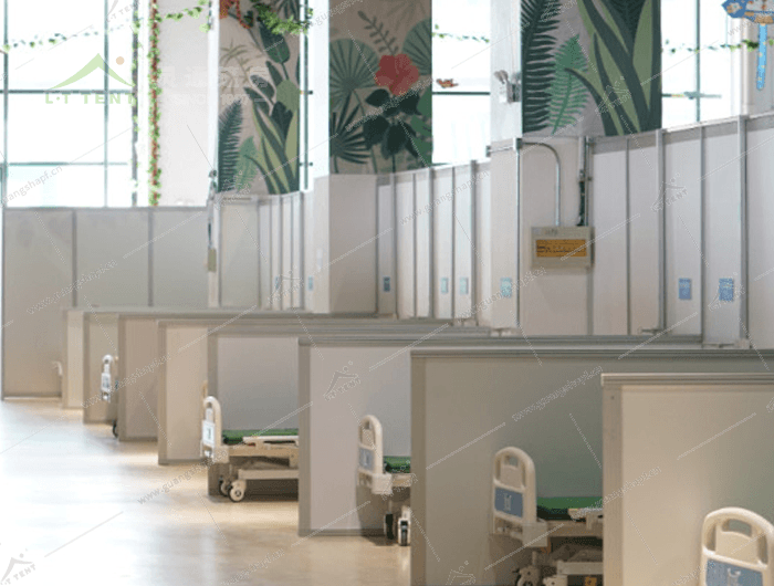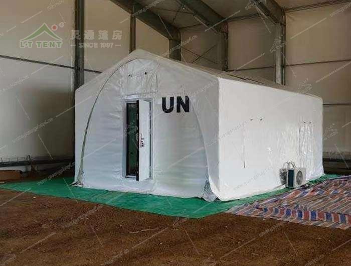 0灵通设计的半永久篷房结构是临时隔离帐篷、医疗救灾帐篷、临时隔离病房、防疫帐篷、临时住宿、休息或办公室的理想临时结构。灵通防疫帐篷整体结构由铝合金支架和PVC刀刮涂层防水布组成。这是一种新型的有规律的模块化结构。