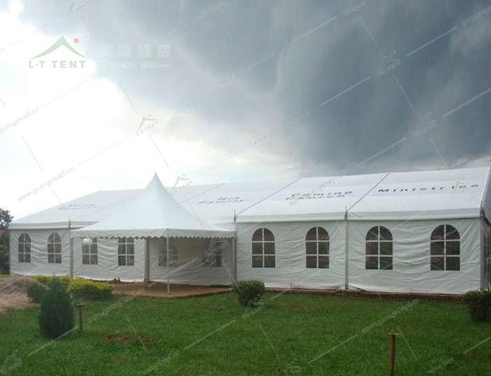 3.适应性强:组合篷房采用高强度铝合金框架与防水篷布,抗风、防雨、防晒,适合户外多种气候环境。